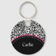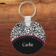 Chic Black White Leopard Print Pink Accent Name Key Ring