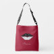 Chic black & white lips & calligraphy on burgundy crossbody bag