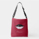 Chic black and white lips, calligraphy on burgundy Crossbody Bag.