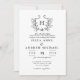 ChIc Black White Monogram Crest Wedding Invitation