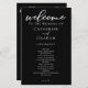 These chic custom black wedding programs feature elegant personalised white typography and a minimalist layout for your winter evening ceremony. Add your bridal party details on the back.