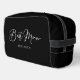 This chic, simple best man toiletry bag features your best man's name under minimalist white typography on black. Customise this elegant, modern bridal gift for your wedding or bachelor party.