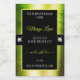 The design features a noble shimmering yellow green marbled frame with fine decor lines, on a plain black background.