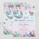 Whimsical mermaid baby shower invitation, featuring a beautiful mermaid, adorable under the sea creatures and colourful corals against rainbow deep ocean backdrop. Personalise it with your party details easily and quickly, simply press the customise it button to further re-arrange and format the style and placement of the text. Matching items available in store! (c) The Happy Cat Studio.