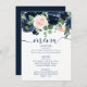 Chic Blooms | Navy Blue and Blush Pink Rose Floral Menu