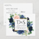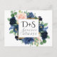 Chic Blooms | Romantic Navy Blue and Blush Wedding Announcement Postcard