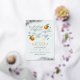 A little cutie is on the way! Celebrate the mum-to-be with this design featuring that phrase in elegant script lettering, with hand-painted oranges and green leaves against a pastel blue background. Your shower details appear below in modern typography. There is faux gold glitter in the top left and bottom right-hand corners.