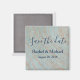 Chic and one of a kind, this is a blue and copper colour Save the Date magnet. With "Save the Date" written across the front in lovely blue cursive lettering, the Couple's name and wedding date is presented underneath. Customise your magnet today!