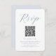 This modern wedding response card features a place for your QR code so that guests can easily rsvp on your wedding website. The front features a simple and clean muted blue calligraphy design with your custom qr code. The minimal back is solid pastel powder blue.