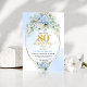 Chic Blue Floral Eucalyptus 80th Birthday Invite