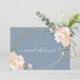 This design features gorgeous peonies and rose buds in shades of blush peach and cream outlined in faux gold foil together with trendy eucalyptus foliage greenery and a faux gold foil geometric shape encircling your Maid of Honour request on a dusty blue background on the front of the card. On the back you also have your lovely dusty blue colour with your personal message to your Maid of Honour to be. Check out the collection which follows for complementary wedding suite products. If you have a design question or would like to see this design on another product, please feel free to contact me at jschmidtdesignworks@gmail.com. Design © Judith Schmidt.
