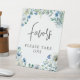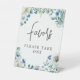 Chic Blue Floral Handwritten Script Wedding Favour Pedestal Sign
