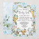 Chic Blue Floral Safari Animals Girl Baby Shower Invitation