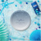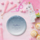 These chic, elegant sixtieth birthday party paper plates feature a sparkly blue faux glitter drip border and blue ombre background. Personalise them with the guest of honour's name in blue handwriting script, with her birthday and date below in sans serif font.