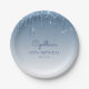 Chic Blue Glitter Drip 60th Birthday Party Paper Plate
