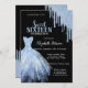 Chic Blue Glitter Drips Blue Dress Black Invitation