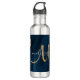 Chic Blue Gold Agate Script Monogram Custom 710 Ml Water Bottle