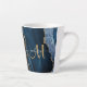 Chic Blue Gold Glitter Agate Custom Monogram Latte Mug