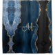 Chic Blue Gold Glitter Agate Custom Monogram Shower Curtain