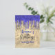 Chic blue gold glitter drips Christmas new year Postcard