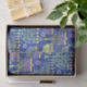 This holiday tissue paper feature a chic pattern of gold, green and purple menorah and gold Star of David on a blue background. Designed by world renowned artist Tim Coffey.