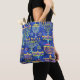 This holiday tote bag features a chic pattern of gold, green and purple menorah and gold Star of David on a blue background. Designed by world renowned artist Tim Coffey.