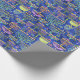 This holiday wrapping paper features a chic pattern of gold, green and purple menorah and gold Star of David on a blue background. Designed by world renowned artist Tim Coffey.