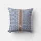 Chic blue greek key geometric patterns monogram cushion