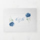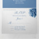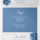Lovely wedding tri-fold invitation done in graphic white textured paper, with pretty graphics of blue hydrangea flowers. A blue background, on the middle invitation section, adds a nice contrast. Personalise the text to suit your wedding needs. Matching products are available.
