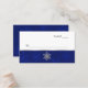 Elegant wedding reception place / escort card done in white, with a blue on blue snowflake pattern, edged in silver, running along the bottom front. Graphics of a silver jewelled snowflake decorates the middle bottom of the card. Keep the text as is, or delete it for a blank card. Matching products available.