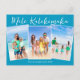 Chic blue customisable beach family photo collage Christmas postcard with your favourite tropical photos in the sun. Add 3 of your favourite vertical photograph memories from your island vacation to the coast. Beautiful coastal horizontal holiday postcards with a clean, modern photograph layout and pretty white script.
