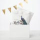 These chic Blue Peacock Bride Squad favour bags feature a hand-drawn blue and teal peacock perched on Magnolia branches in full bloom in black ink and the title "Bride Squad" in elegant script, all against a trendy and chic soft blue background. Personalise with bride's name, city and date by clicking on "Personalise this template" on the product page.