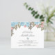 Featuring a chic floral branch in subtle palette of dusty blue, blush pink and moss green foliage surrounding your names with your party details in elegant combination of cursive and capital letter, this stunning but cheap rehearsal dinner Invitation is perfect for formal celebration, or elegant wedding. Card reverse to a matching pink