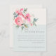 Chic Blue Pink Rose Orchid Floral Wedding Details Enclosure Card