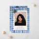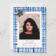 Chic Blue Plaid and Flowers Graduation Photo Announcement