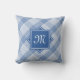 Chic Blue Plaid With Modern Diagonal Monogram Cushion