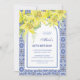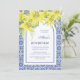 Chic Blue Portuguese Azulejo Yellow Lily Birthday Invitation