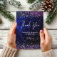 Chic blue purple faux glitter monogram thank you card. Shimmering cute glittery and chic downloadable thank you card. Perfect for sending out to family or friends for the holiday season or any other occasion like weddings, birthdays, baby showers, wedding showers and bachelorette parties. To make it extra special it is embellished with beautiful faux glitter. This design can also be transferred onto any product on zazzle. You can personalise it with your own text and information.