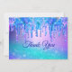 Chic blue purple ombre dripping glitter thank you card