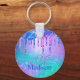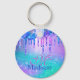 Chic blue purple ombre glitter drips monogram Metal keychain. Girly, trendy and modern keychain. It makes the perfect sweet 16 birthday, wedding, bridal shower, anniversary, baby shower or bachelorette party gift for someone that loves glam luxury and chic styles. Whether for valentines day, Christmas or any occasion in general this metal keychain will make a great gift idea for any girl or woman who loves modern sparkly elegance. PLEASE NOTE: These are flat printed graphics - no real glitter, jewels or raised parts.