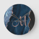 Chic Blue Rose Gold Agate Script Monogram Custom Round Clock