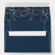 Make a memorable impression with this dark blue wedding envelope, featuring a beautifully lined interior with delicate rose gold foliage and your return address elegantly printed on the back flap. The rich, dark blue exterior contrasts perfectly with the luxurious rose gold accents inside, adding a touch of sophistication to your wedding suite. This envelope not only enhances the presentation of your invitations but also adds a cohesive, stylish detail that reflects a refined and modern aesthetic.