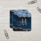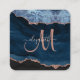 Chic Blue Rose Gold Glitter Agate Script Monogram Square Business Card