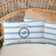 Chic Blue Stripes Monogram Family Beach House Lumbar Cushion