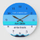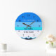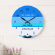 Chic Blue Stripes Wave Family Name Beach House Large Clock