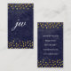 chic blue texture with golden spots monogram business card