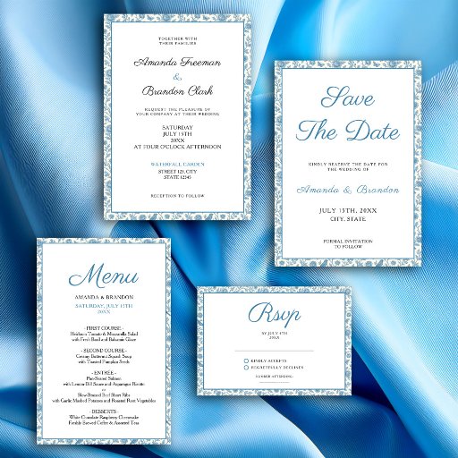 Chic Blue Toile de Jouy Floral Border WeddingDesigned by Youssef Aït Elmouden