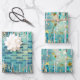 Chic blue, turquoise and gold wrapping paper sheet
