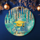 Chic blue turquoise gold glitter drips graduate ceramic tree decoration