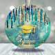 Chic blue turquoise gold glitter drips graduate ceramic ornament. Sparkly graduation ornament for a high school or college graduate. Monogram this beautiful gift with your custom senior name and class in the centre.A perfect Christmas ornament gift for this year's Class grad with a mortarboard graduation hat.